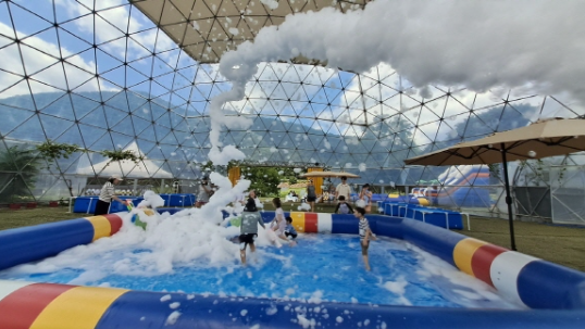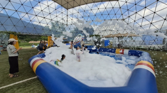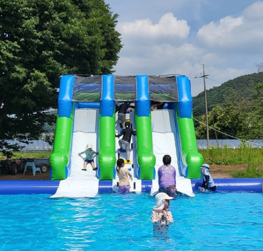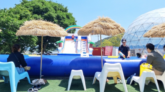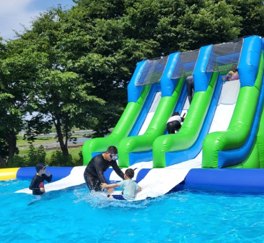 - 신나는 물놀이존: 여름 더위를 시원하게 날려버릴 수 있는 물놀이 시설이 마련되어 있습니다. 대형 에어바운스, 워터 슬라이드, 유아용 풀장 등 다양한 연령대가 안전하게 즐길 수 있도록 구성되어 있습니다. 전문 안전요원도 배치되어 안심하고 물놀이를 즐길 수 있습니다.